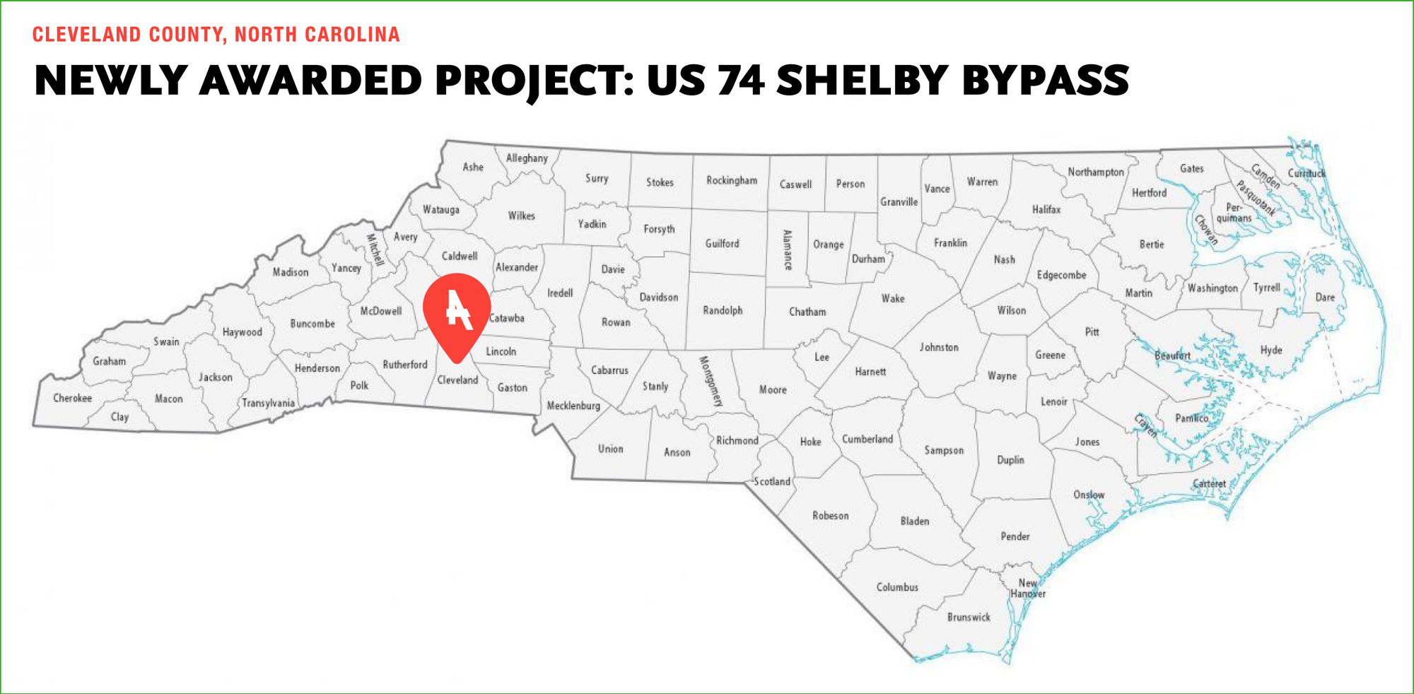 Ames was recently awarded a project to construct a new bypass alignment of US 74 in Shelby, North Carolina.
