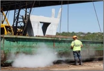 D. Power-wash to remove non-visible material (high temperature preferable) at 3,000 psi.
